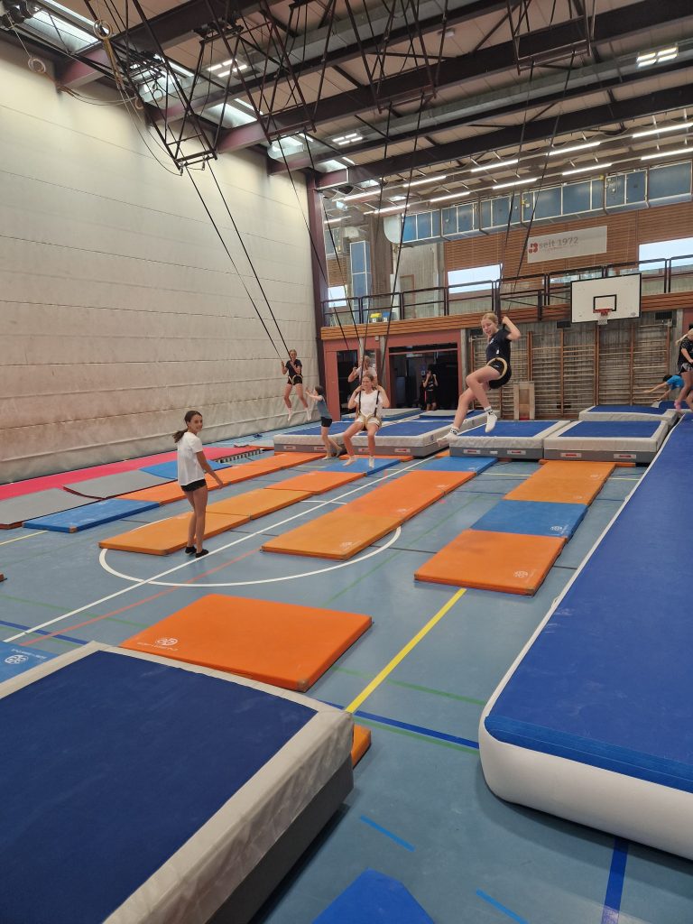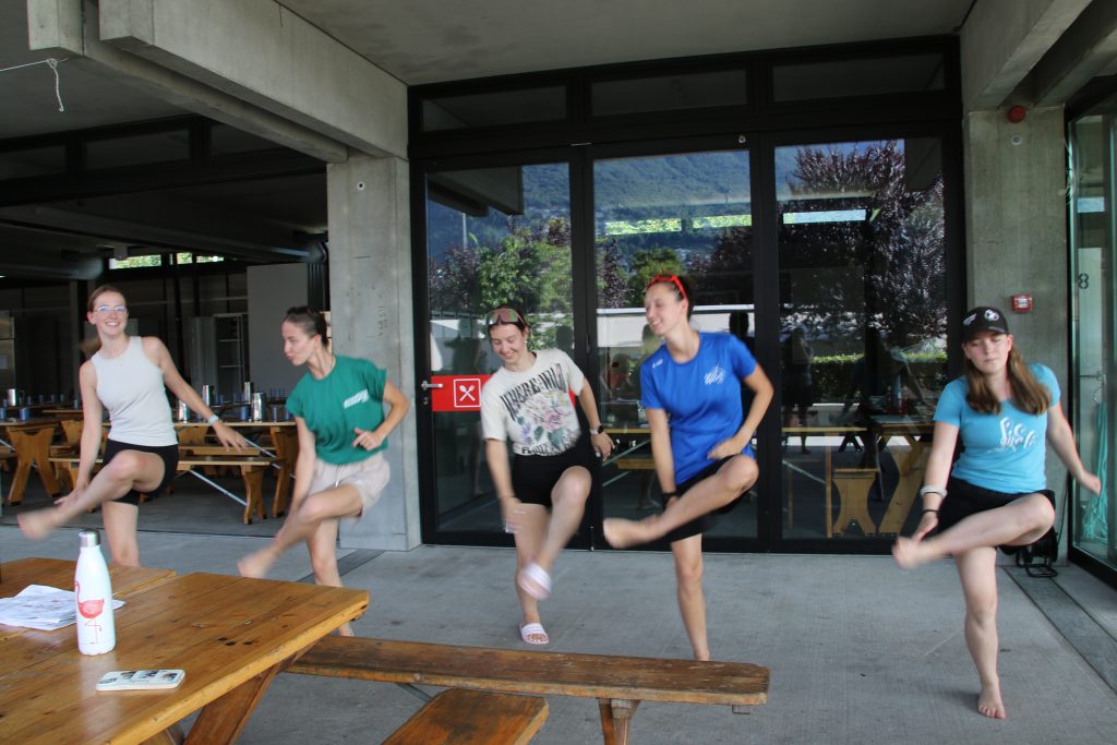 Ein paar starteten den Tag mit Pilates. Danach gab es ein super Morgenessen. Um halb 9 begannen die Hauptsportarten wie z.B. Beachvolleyball, Polobike oder Kajak. Zum Znüni gab es Trauben und Kuchen. Weiter ging es mit der zweiten Wahlsportart. Der Kartoffelsalat und die Wienerli waren perfekt für den Mittag. Nach der Mittagspause ging es weiter mit den Hauptsportarten, wir tanzten und andere spielten Tischtennis oder Geräteturnen. Um 5 Uhr begann unsere Freizeit. Nach dem leckeren Abendessen tanzten wir alle zusammen den Lagertanz. Um 22 Uhr war es leise und alle schliefen.