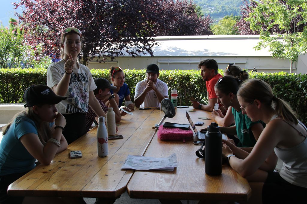 Dann haben wir ein Kennenlernspiel gespielt. Wir haben einen OL auf dem Gelände gemacht.