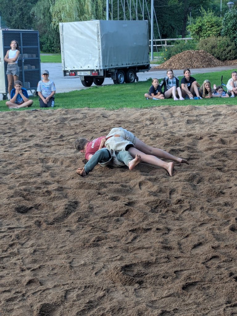Am Abend hatten wir ein Schwingfest, das war spannend.