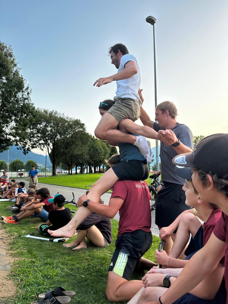 Am Morgen fing es «bestialisch» früh an, für manche war aber auch schlafen angesagt. Nach dem frühen Start wurde Calisthenics und Pilates gemacht. Um 7:00 Uhr wurden wir von cooler und lauter Musik geweckt, für Renya gab es sogar schon einen Kaffee. Nach der Zeltkontrolle gab es ein sehr leckeres Frühstück. Es gab Käse, Brot, Konfitüren, Jogurt und feines Ovo Müesli. Dann ging es für manche ab in das Schwimmbad, sehr viele wollten ins Schwimmen, aber leider gab es nur 12 Plätze. Die Wahlsportarten waren sehr gut und lustig, nach einem leckeren Znüni mit Ovo Riegel und Obst. Nach noch einer grossartigen Sportart, gab es ein sehr leckeres Mittagessen, nämlich Kartoffelstock mit Bratkügelchen. Am Nachmittag wurde Basketball, Lacrosse, Tischtennis, Pickle Ball gespielt und getanzt wurde natürlich auch. Der beste aller Zvieris war heute, der wurde natürlich auch genossen und nach einer kurzen Abkühlung im See wurde das leckere Abendessen verschlungen und der Lagertanz wurde geübt und jetzt wird das Feuerwerk genossen.